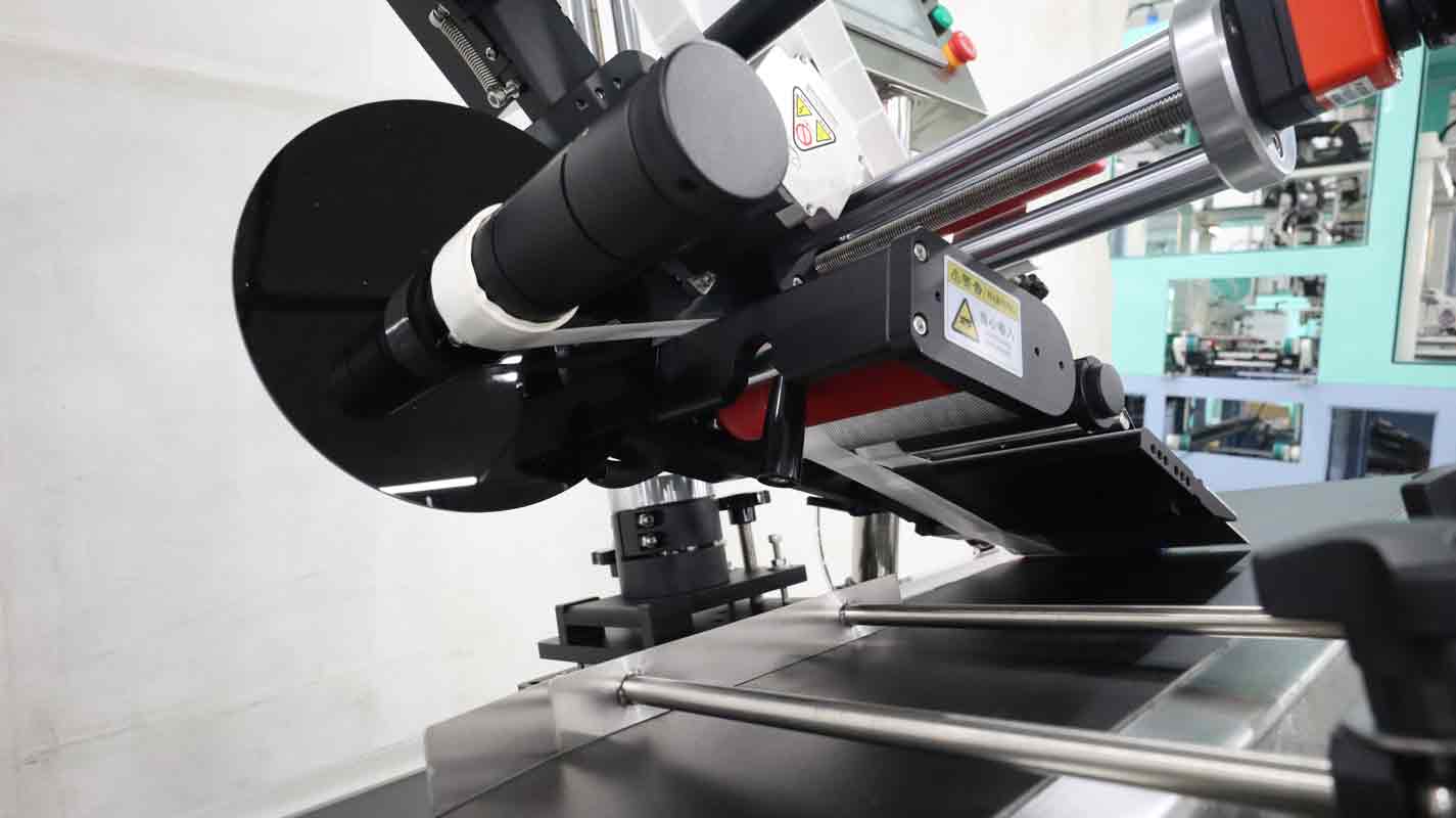 4.定位校準:使用治具固定卡片或PE袋樣本,手動調(diào)試貼標頭的高度、角度及前后位置,確保標簽與貼附面完全吻合。